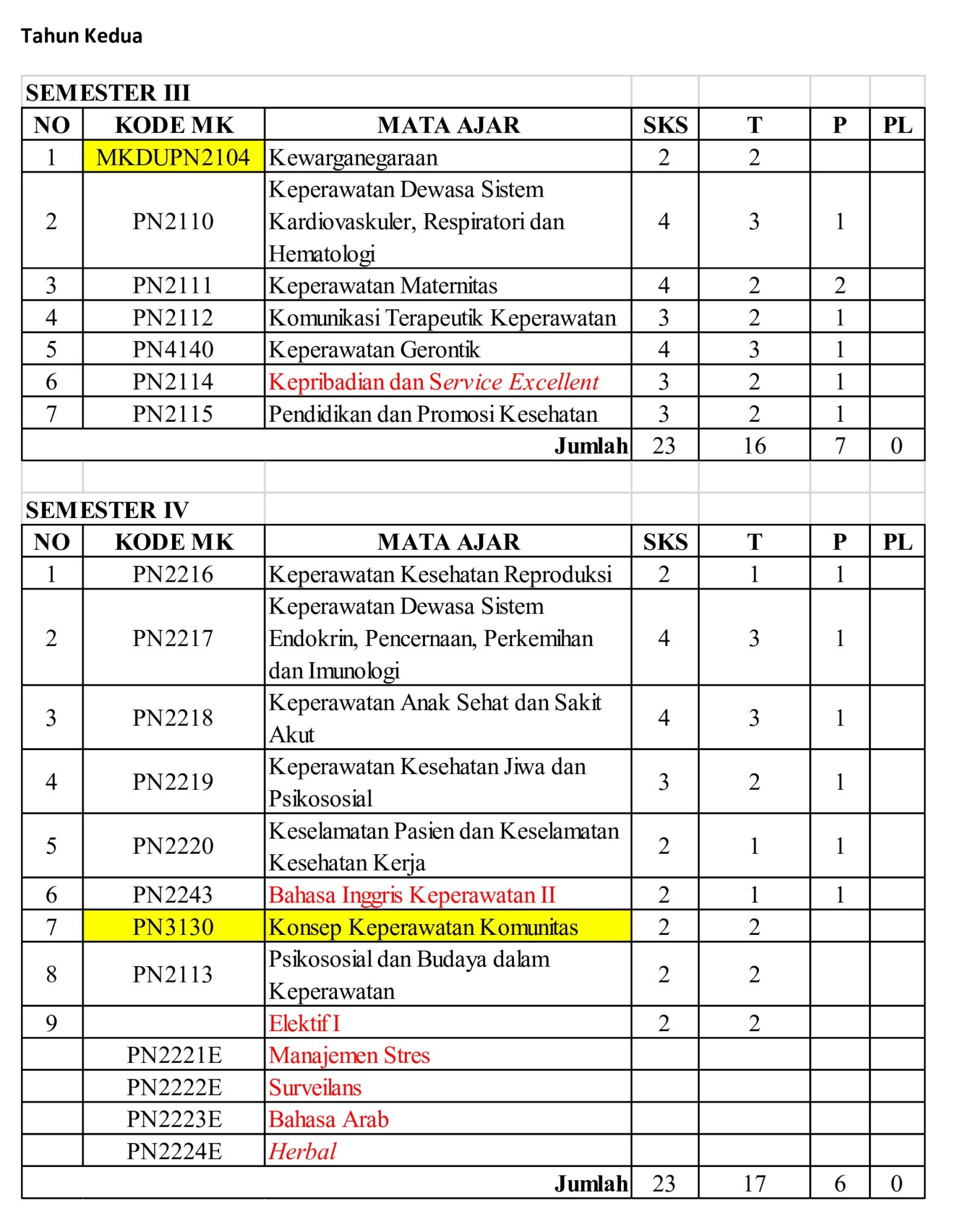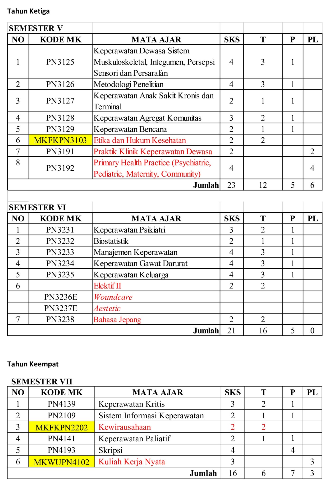 STRUKTUR MATA KULIAH PROGRAM STUDI S1 KEPERAWATAN